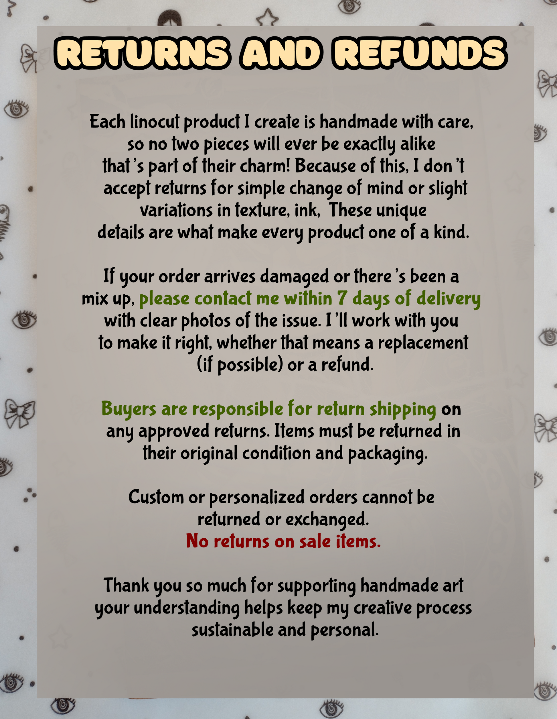 ★IMPORTANT: THE IMAGE IS AN EXAMPLE. PRINTS WILL DIFFER AS EACH ONE IS UNIQUELY HAND PRESSED.