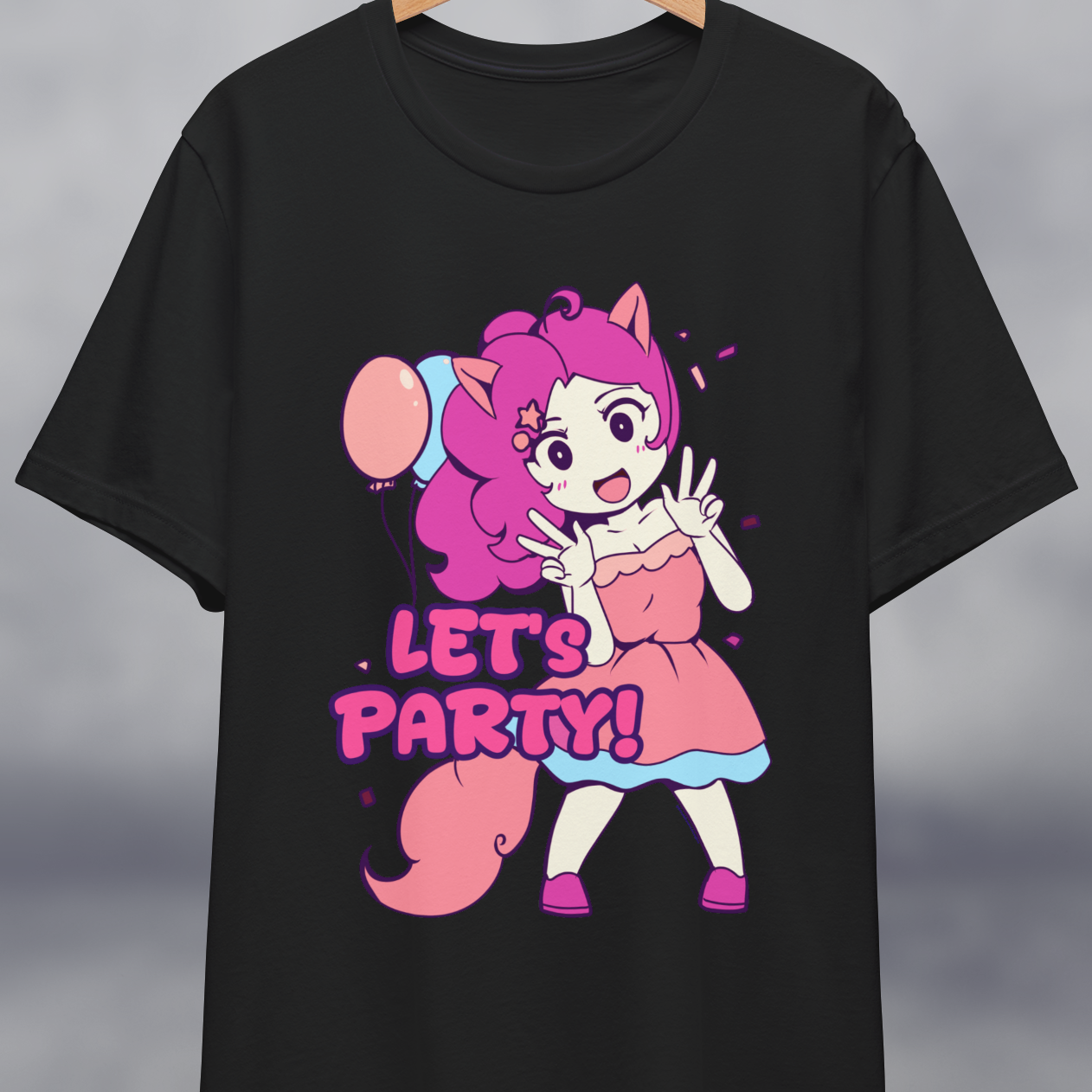 A Pinkie Pie MLP inspired t-shirt that says "Let's partys"