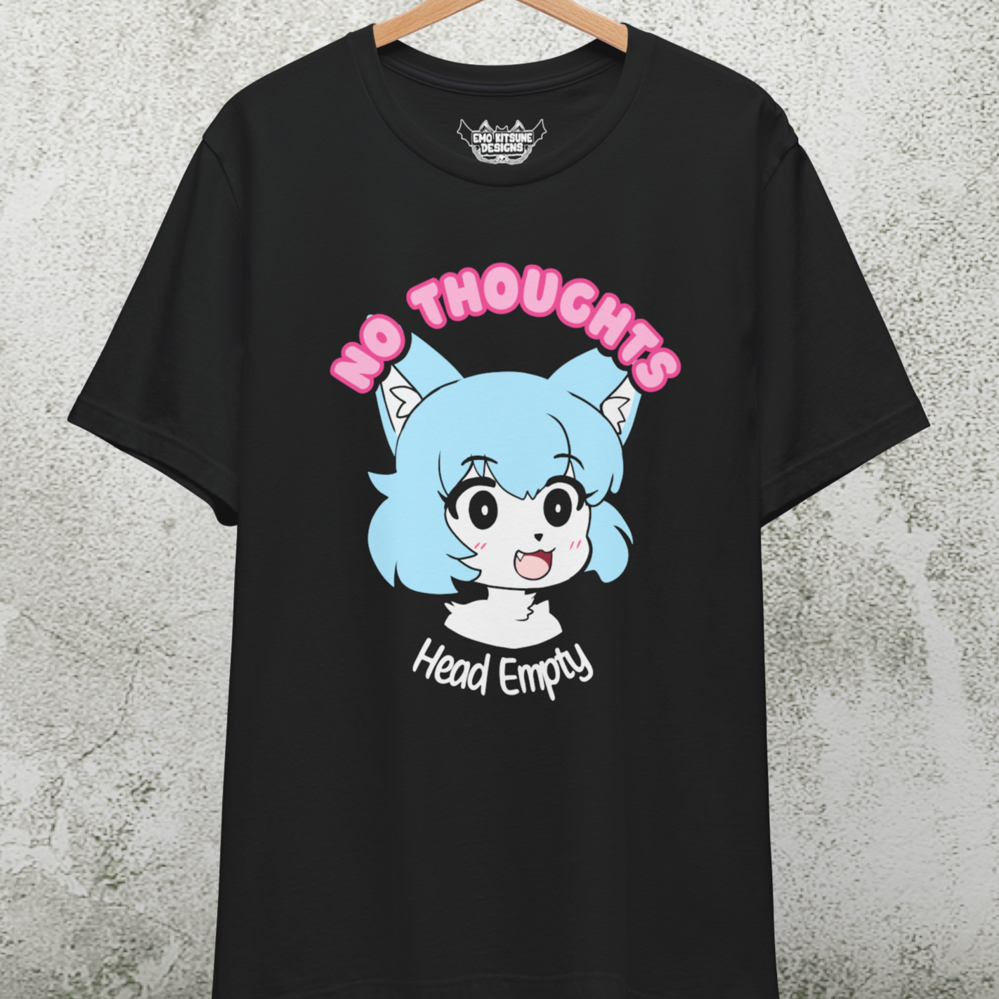 A black Chibi Kemono furry t-shirt that says "No Thoughts Head Empty"